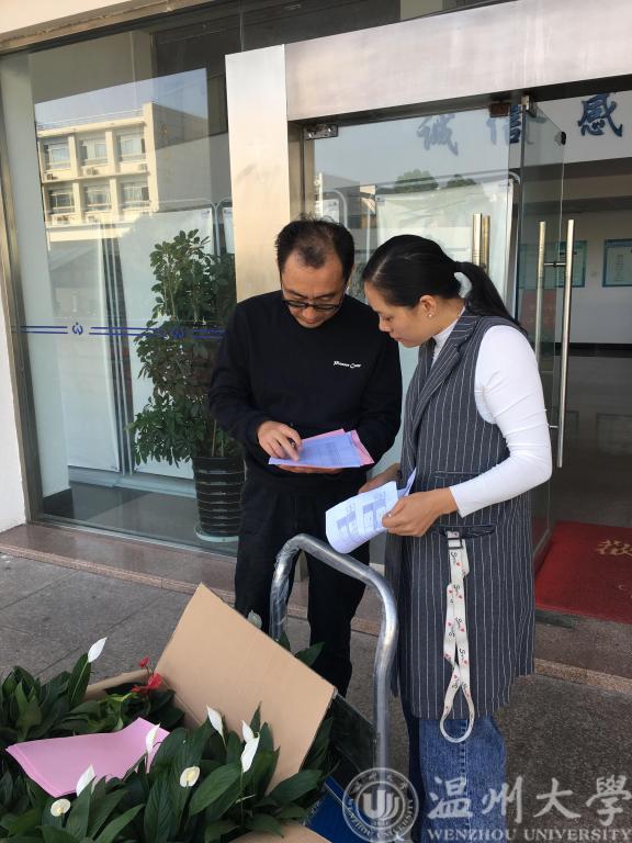 10月21日上午,蜜桃视频 教工行政党支部书记曾蓓蕾、工会主席宋元平,带领支部成员孙双老师、潘龙飞老师,以及研究生党员扬起超带着新鲜的绿植和预防“登革热”的宣传单,奔赴学院各个教师办公室和实验室,为老师们的办公室献上一份绿色,并化身预防“登革热”的宣传员,为各位老师讲解“登革热”预防的相关知识。