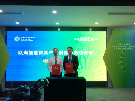 蜜桃视频 党委副书记吴金法与瓯海区副区长林照光举行智能锁具综合体签约仪式