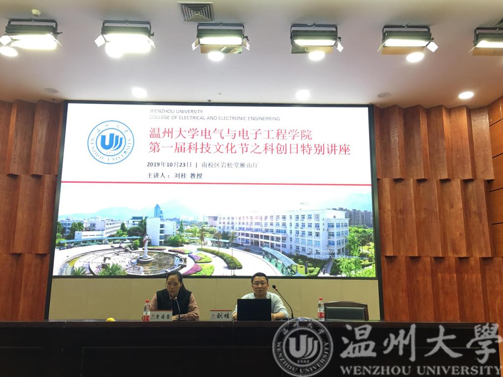 刘桂教授博士毕业于美国伊利诺伊理工大学,主持过2次国家级、4次省级、1次市级的科研项目,是一位杰出的电子工程研究的学者。18:30,讲座准时开始。首先,刘教授进行了简单的自我介绍,并为同学们展示了自己的研究方向。刘教授的研究方向分为“射频集成电路、天线设计、微波器件设计、物联网技术、应用基础研究”五个方面。同时,刘教授也对这五个方面进行了细致的讲解,过程中,刘教授风趣幽默的语言逗得全场欢声一片,成为讲座中一道靓丽的风采线。此外,刘教授所获得的科技奖项也让同学们感到震惊,他所带领的团队是温州市重点创新团队,其本人申请了1项发明专利、5项实用新型专利和1项软著。可以说,刘教授的介绍不仅开阔了同学们的眼界,也让同学们深深懂得了科技成果的来之不易。
