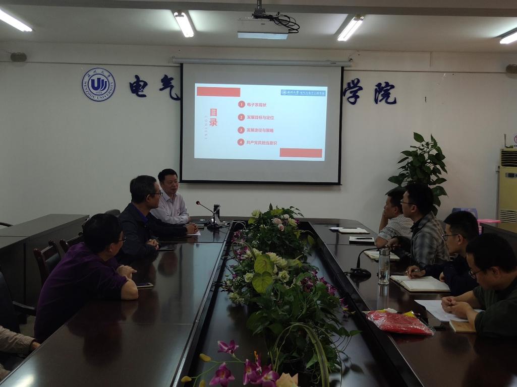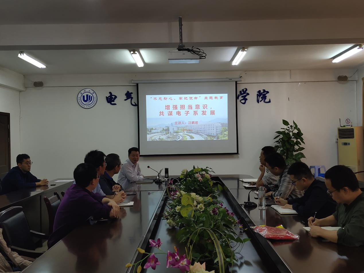 10月30日下午,蜜桃视频 电子系在1A502召开“不忘初心、牢记使命”主题教育学习会,系部全体教师参加了本次学习会。在本次学习会上,汪鹏君院长作了题为“增强担当意识,共谋电子系发展”的主题党课。汪院长围绕电子系现状、发展目标与定位、发展途径与策略、共产党员担当意识四个方面,深入阐述了电子系现阶段“发展如何”以及“如何发展”的问题,提出了一系列富有建设性的意见,为专业和学科的下一步发展指明了方向。随后,与会教师逐一发表了自己的观点,并就一些具体问题展开了热烈的讨论。