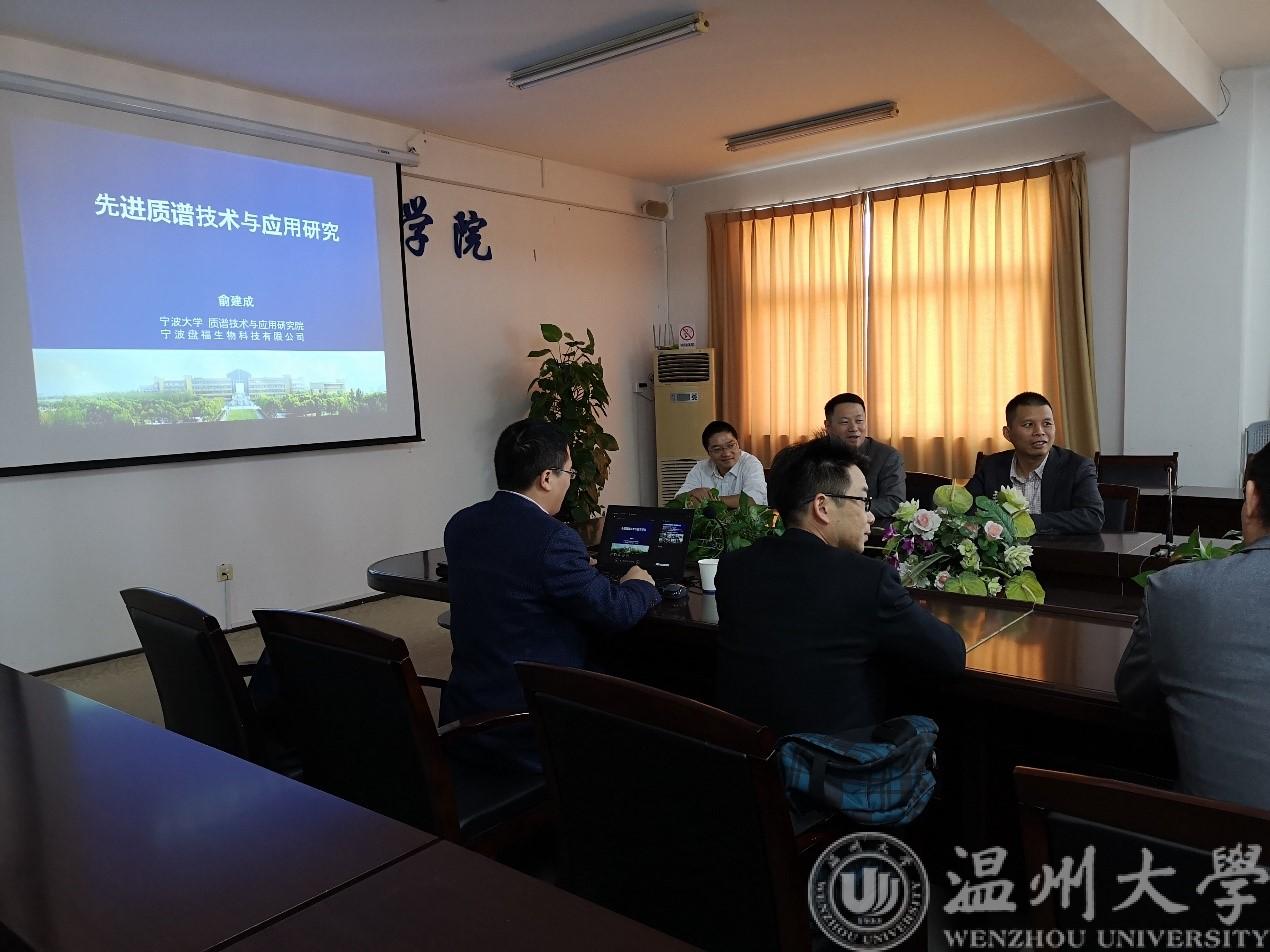 2019年11月14日星期四下午3点半,蜜桃视频 邀请到宁波大学质谱技术与应用研究院副院长俞建成研究员做题为“先进质谱技术与应用研究”的精彩学术报告。报告由汪鹏君院长主持,相关专业的老师和研究生聆听了报告。