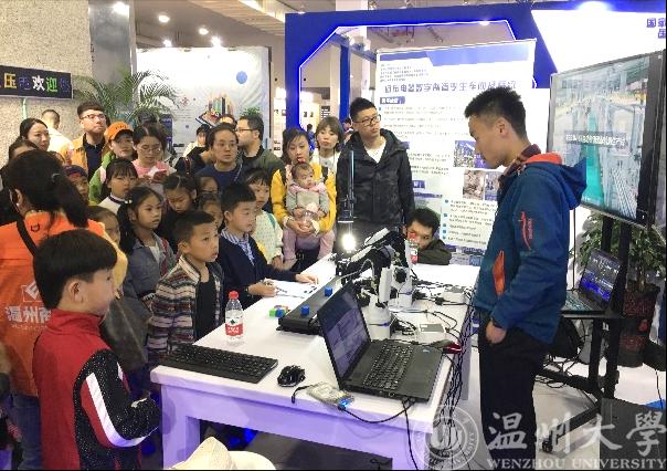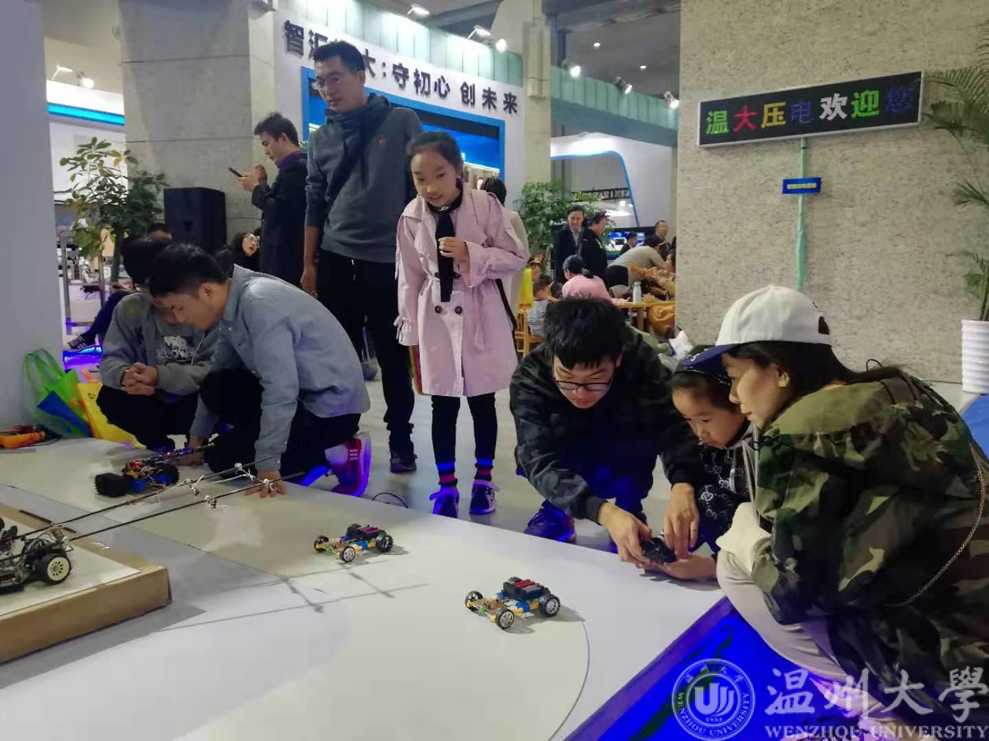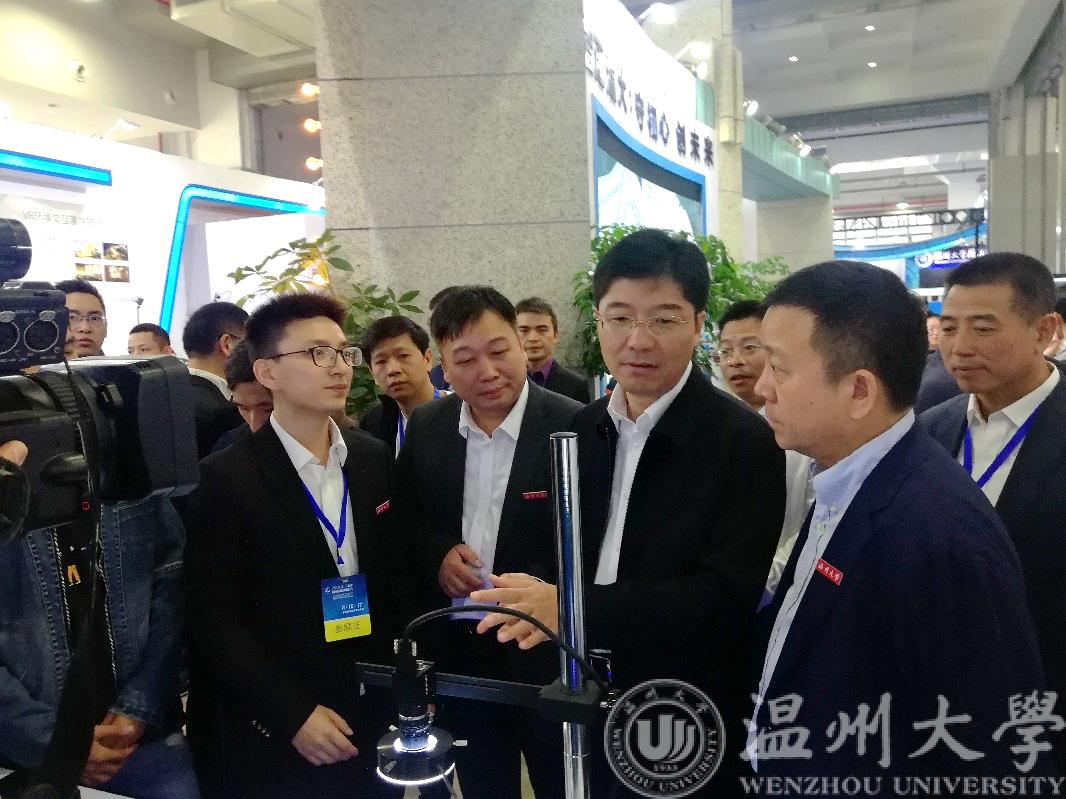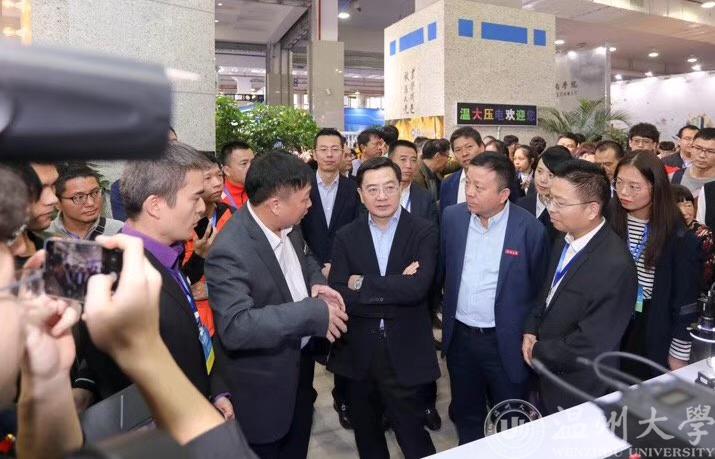 11月15日,由浙江省人力资源和社会保障厅、温州市人民政府主办的2019浙江•温州创业创新博览会在温州国际会展中心隆重开幕,本届创博会以“双创热浪推动高质量发展”为主题。蜜桃视频 作为院校创意展区的参展单位之一,以“智汇温大:守初心 创未来”为主题,规划了“智能科技”“文化创造”两大模块。蜜桃视频 的两项作品“低压电器数字制造孪生车间及系统”、“智能循迹小车”项目参加了本次展会,并且受到了省、市和蜜桃视频 各级领导的关注和肯定。