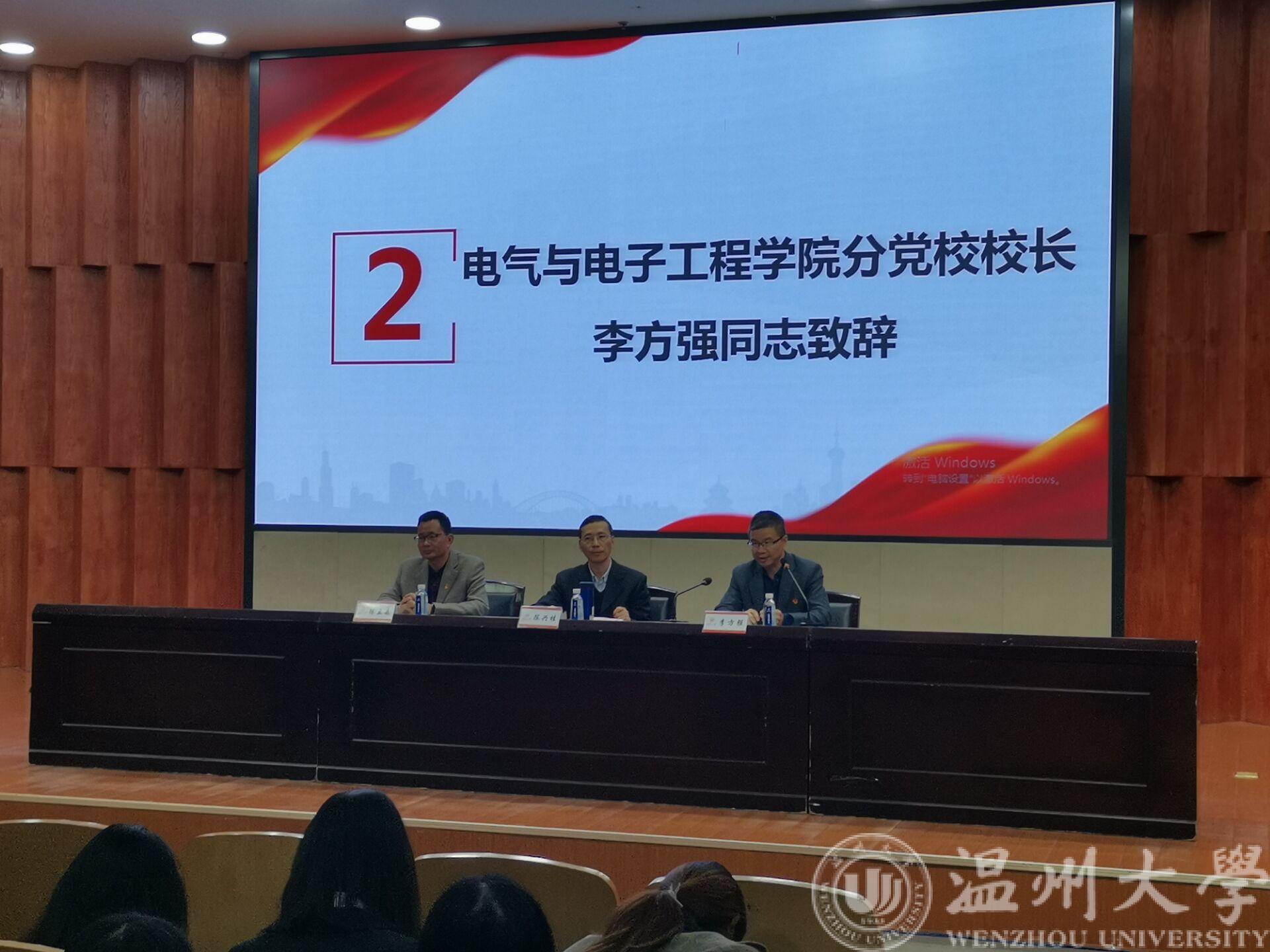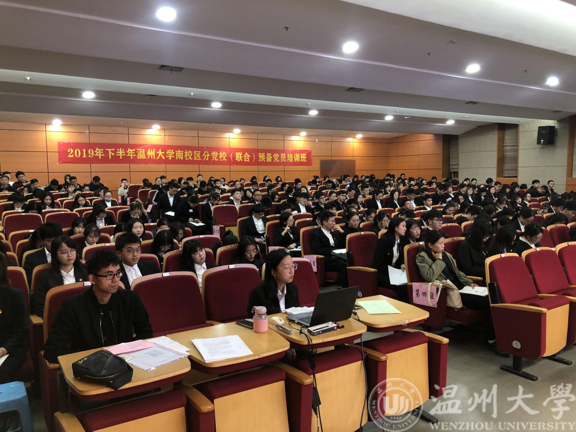 由蜜桃视频 、数理学院、生命与环境科学学院共同承办,南校区各学院分党校联合举办的2019年第2期预备党员培训班于11月20日晚在雁山厅顺利开班。承办学院党委书记、分党校校长李方强、陈兴桂、陈孟森出席开班典礼。南校区342名本科和研究生党员参加学习。