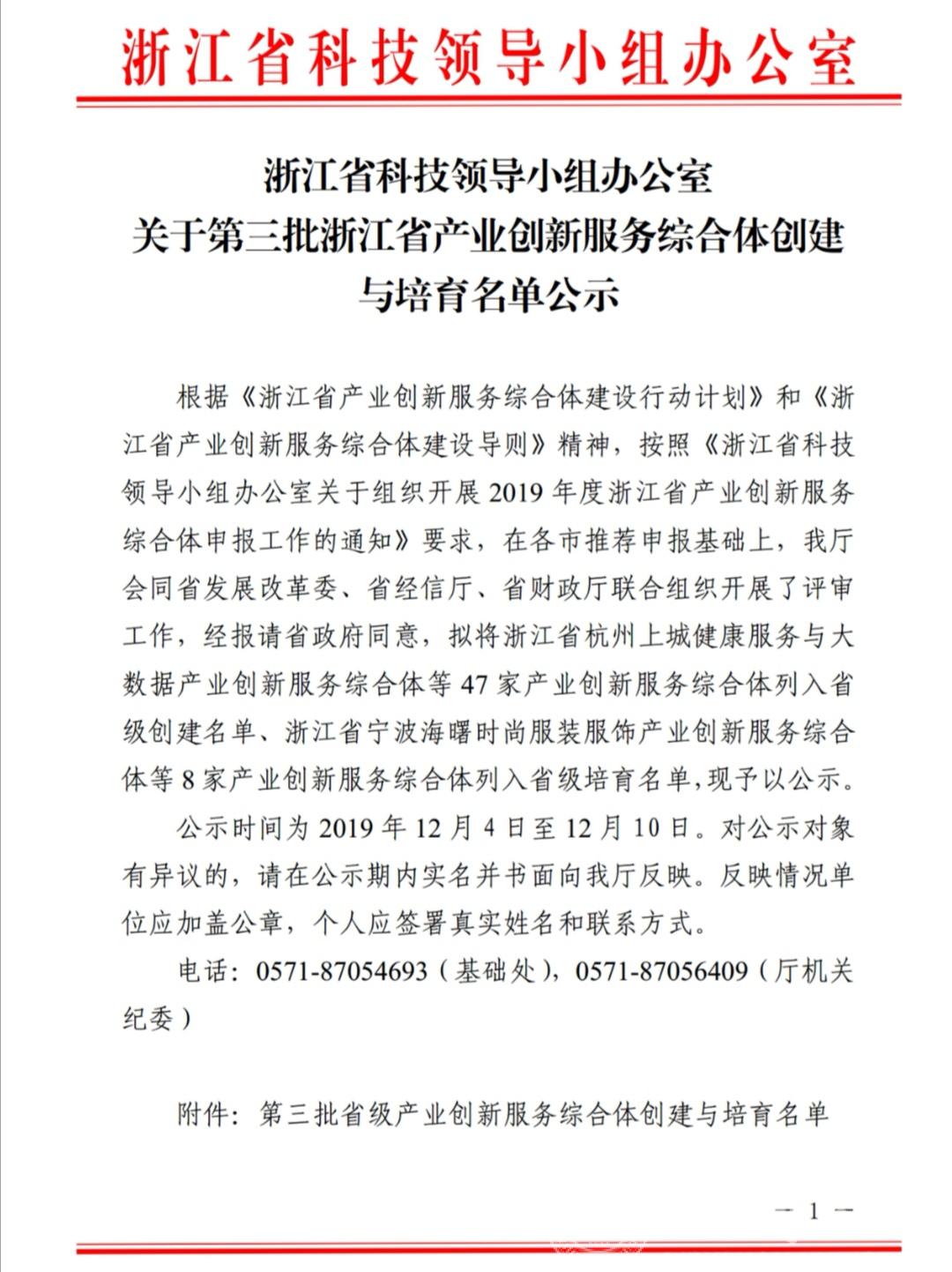 12月4日,浙江省科技领导办公室发文,第三批浙江省产业创新服务综合体创建与培育公示名单发布,由蜜桃视频 智能锁具研究院负责运营与管理的浙江省温州瓯海智能锁具产业创新服务综合体列入省级创建名单。这是我校研究院负责运行和管理的第二家产业创新服务综合体列入省级创建名单,是我校服务地方产业发展的又一重要成果。