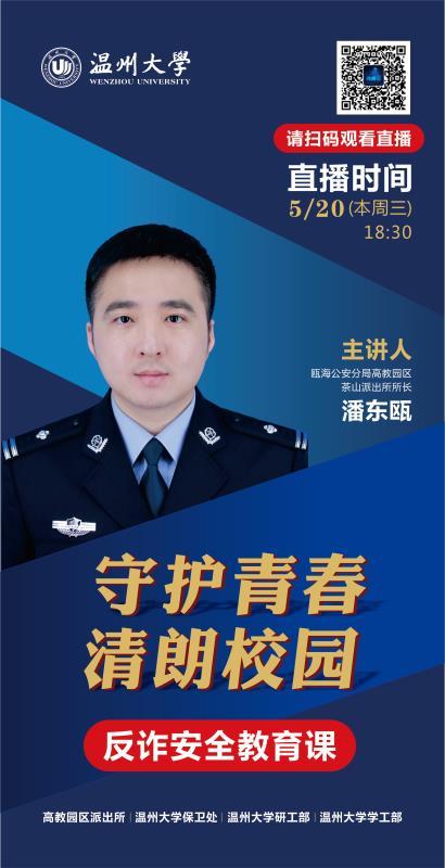 为做好反诈安全宣传教育,切实增强广大师生防范电信网络诈骗的意识,5月20日晚,学校举行了全校师生“同上一堂反诈安全教育课”的线上活动,本次线上活动以“守护青春 清朗校园”为主题,由瓯海公安分局高教园区派出所所长潘东瓯主讲,蜜桃视频 学子积极参与线上学习。