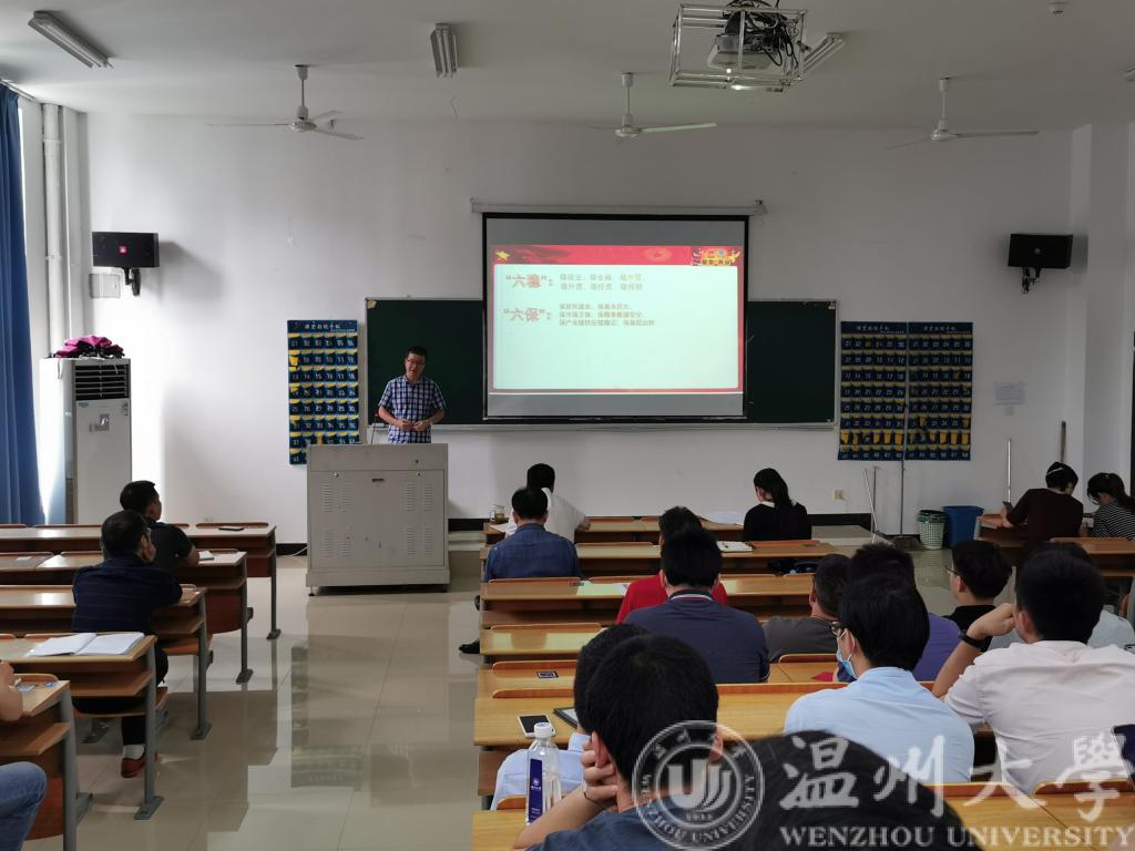 6月10日下午,蜜桃视频 全体教职工政治理论学习会在1B402召开,这是疫情之后,学院教职工第一次线下学习会,学院党委书记李方强做2020年全国两会精神解读。
