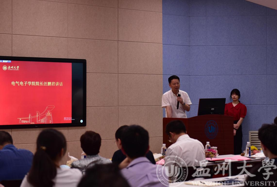 电气电子学院院长汪鹏君致辞。汪院长首先对学校的大力支持表示衷心的感谢,他指出,希望借助教师教学技能比赛这个平台,锤炼青年教师教学基本功,促进教师们进一步热爱教学、钻研教学,在竞赛打磨中提高教学水平,快速成长为教学科研骨干,带动学院教学教改各项工作进一步提升。