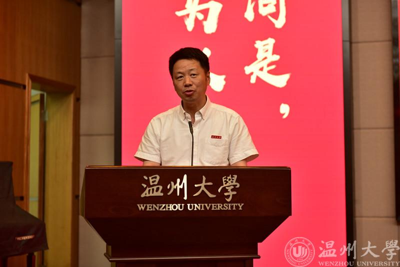 首先是学院院长汪鹏君老师致辞。汪院长围绕今年学院整体发展,并结合学院今年考研成果、就业工作等方面向2020届毕业生作了全方位的介绍,并寄语毕业生们要“学会感恩,学会相处,勇于担当”,最后,他祝福全体毕业生乘风破浪、奋勇前行、再创辉煌,与此同时,他也深情的叮嘱大家“常回家看看”!
