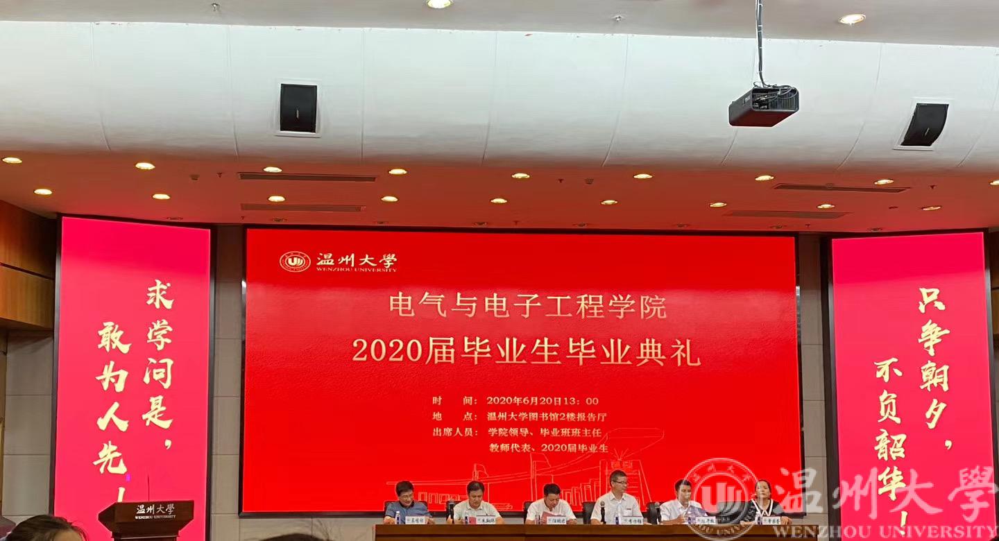 2020届毕业生毕业典礼在校育英图书馆2楼报告厅圆满举行。参加毕业典礼的人员主要有学院领导班子、毕业班班主任、教师代表,以及2020届全体本、硕毕业生。本次毕业典礼由院党委书记李方强主持。