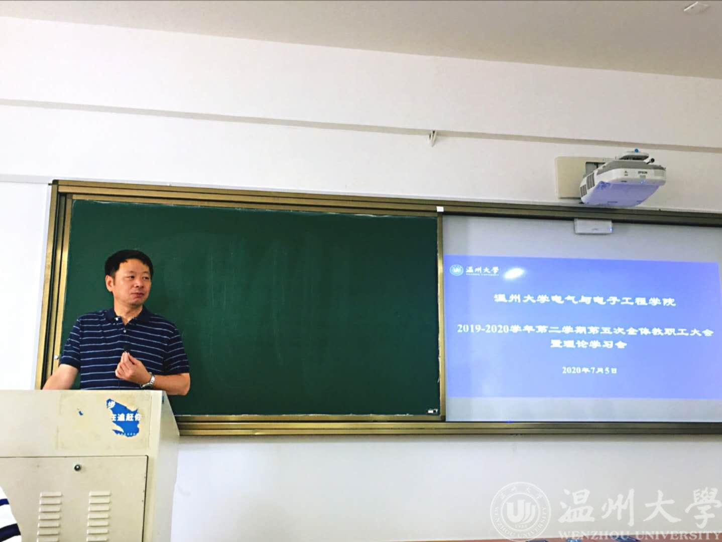 7月5日上午,蜜桃视频 在南校区1号楼A207召开2019-2020学年第二学期第五次全体教职工大会暨理论学习会。会议由学院党委书记李方强主持,全院教职工参加会议。