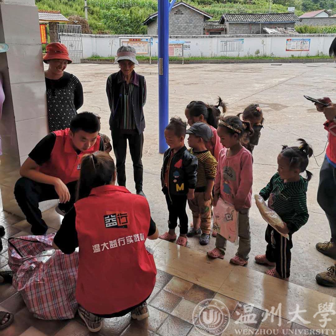 大凉山是海拔2500米左右扶贫地带,山特别高,谷特别深,大陡坡、悬崖满目皆是,村寨极度分散,在一块块稍平坦的坡地上托起,有些高崖上的村寨到谷底的垂直落差可达七八百米。随着脱贫攻坚的步伐加快,凉山州有一项远见卓识之举,为赶上新生活步伐,从娃娃抓起。由于四川凉山海拔较高,昼夜温差大,实践队的成员们向他们捐赠保暖内衣。这665件衣服是婴儿和儿童的保暖内衣,由温州华盖商服装市场某老板捐赠,价值6万余元。虽然正指夏季,艳阳高照,孩子们还是将保暖内衣穿上了,可见他们内心的喜悦。为了契合当地对卫生健康的教育普及,我们将剩余的衣物交由尔赛乡政府。乡政府负责人将其放置在当地的新风超市,人们凭卫生积分换取。这样一来既能改善一部分孩子的保暖问题,又能促进村民养成良好的卫生习惯。
