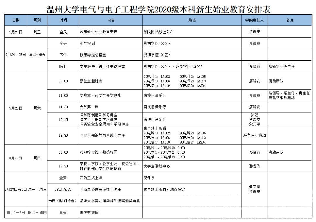 学院提前排版制作新生始业教育安排表,让新生清晰了解开学各项安排事宜。