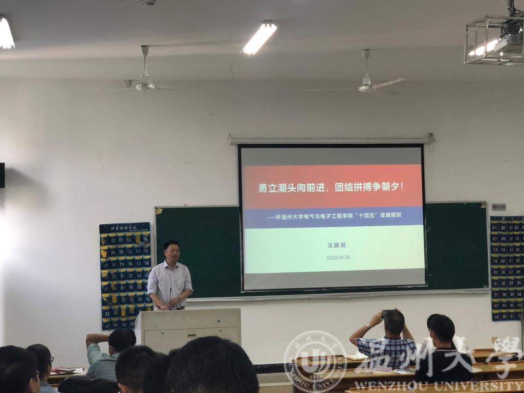 接着,汪鹏君院长以“勇立潮头向前进,团结拼搏争朝夕”为题,向全院教工介绍了学院“十四五”发展规划,他分析了蜜桃视频 发展现状、目前存在的问题、面临的机遇和挑战、具体目标、主要任务及保障措施,尤其指出“党员要在其中发挥先锋模范作用,党支部要发挥战斗堡垒作用”!