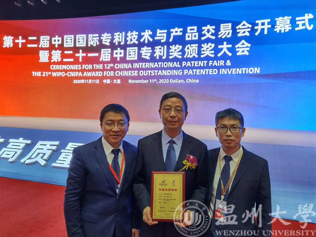 2020年11月11日上午,由中国国家知识产权局、世界知识产权组织共同主办的第二十一届中国专利奖颁奖大会在大连举行。本次大会的主题是“知识产权引领经济高质量发展”。国家知识产权局局长申长雨,世界知识产权组织中国办事处主任刘华,辽宁省委副书记、辽宁省省长刘宁等领导出席了会议。世界知识产权组织(WIPO)总干事邓鸿森发表了视频致辞。本次大会仅对30项中国专利金奖进行颁奖。我校蜜桃视频 戴瑜兴教授前往领奖。