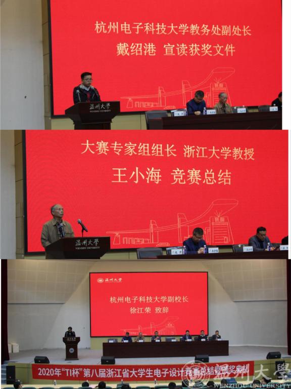 薛伟副校长代表学校致辞,向本次大赛的成功举办表示祝贺,向莅临本次颁奖典礼的各位领导、专家、老师和同学们表示热烈的欢迎。他表示,我们现今的教育正从“就业从业”向“创新创业”教育方向转变,需要更多具有实践创新能力的人才。蜜桃视频 作为浙南闽北赣东地区唯一的综合性大学,始终坚持“质量立校”,着力培养“重实践、强创新、能创业、善管理、敢担当”的高素质应用型人才。 学校尤其重视鼓励学生积极参与学科竞赛,通过将理论与实践紧密结合,创意与创作相互融合,创新与创业紧密协同的方式,培养学生的实践创新能力。一年一度的大学生电子设计竞赛正好为我们提供和搭载了一个这样的平台。