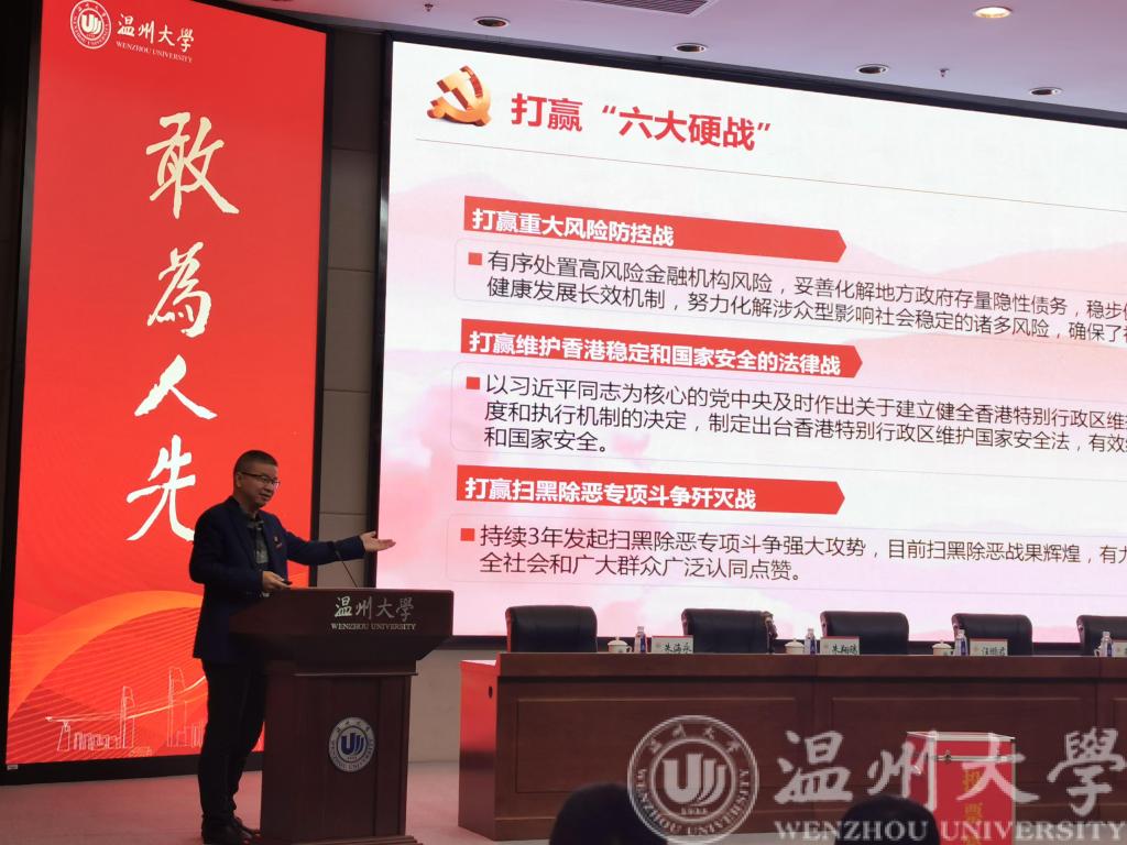 为深入学习好、宣传好、贯彻好党的十九届五中全会精神,蜜桃视频 于12月2日下午3:30,在图书馆二楼报告厅,召开全院教职工理论学习会,学院党委书记李方强做全会精神解读报告。