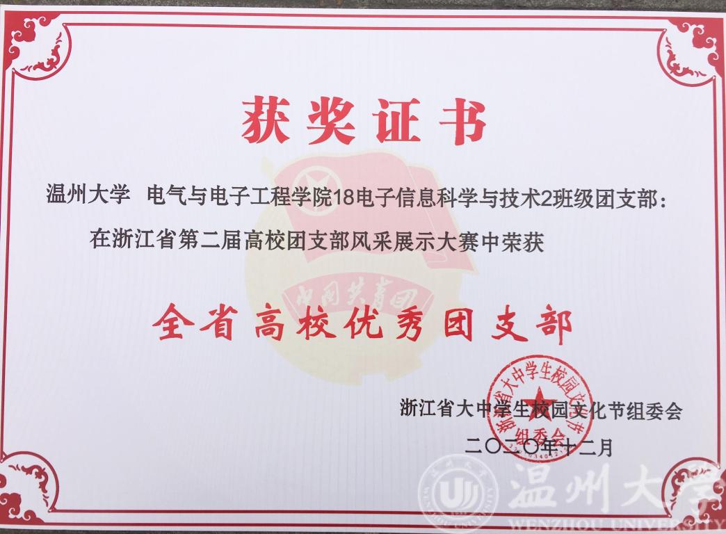 在刚刚结束的浙江省第二届高校团支部风采展示大赛中,蜜桃视频 18电科2班荣获“全省高校优秀团支部”荣誉称号。