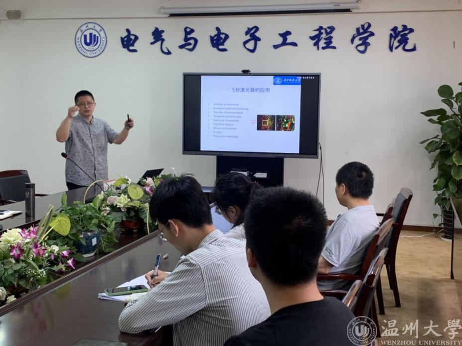 华中科技大学赵鹭明教授应邀来访蜜桃视频 电气电子学院,于2021年06月03日上午10:00-11:30在学院1A502会议室作了题为“超快光纤激光器中脉冲形成机理研究及最新进展”学术报告。电气电子学院副院长朱海永教授主持了学术报告会,电气电气学院和数理学院相关老师和研究生参加了会议。