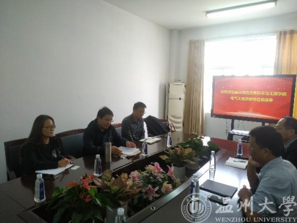 10月28日上午,嘉兴学院信息科学与工程学院电气系主任张今朝、副主任徐永锋、教务办主任王安红一行3人来访蜜桃视频 ,围绕电气工程及其自动化专业认证工作进行交流。蜜桃视频 副院长陈孝敬、电气系主任吴平、副主任闫正兵及电气系老师刘峰出席会议,会议由吴平主任主持。