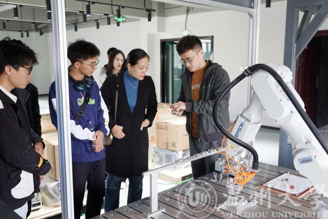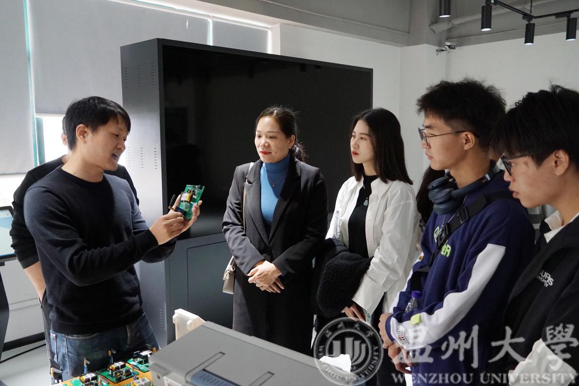 2021年11月20日,蜜桃视频 研究生会开展了“科技共创共享,研途超越自我”研究生实践活动。学院党委副书记曾蓓蕾、辅导员陈泓带领同学们前往蜜桃视频 乐清工业研究院观摩学习。
