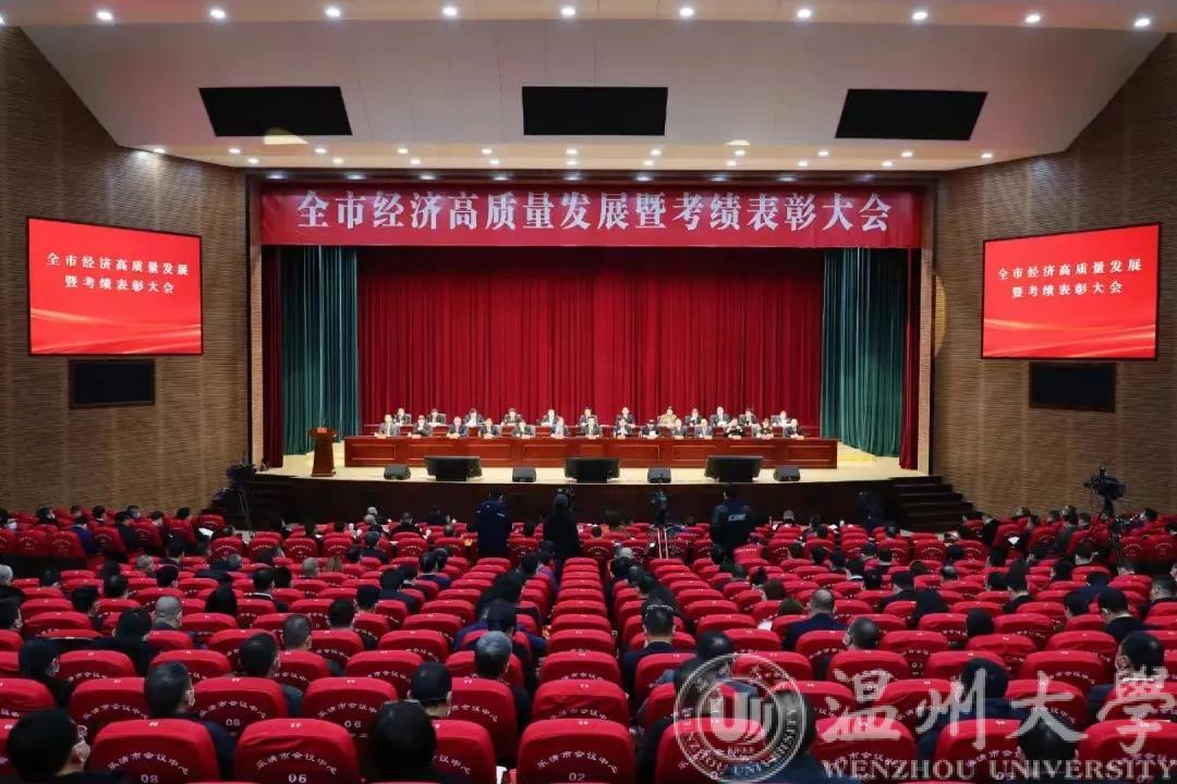 2月9日上午,乐清市经济高质量发展暨考绩表彰大会在市行政管理中心大会堂召开,会议旨在表彰过去一年发展事业走在前列的先进部门、企业,并激励振奋精神,今年继续锚定目标,砥砺前行。乐清市委书记徐建兵出席大会,代市长戴旭强主持会议。