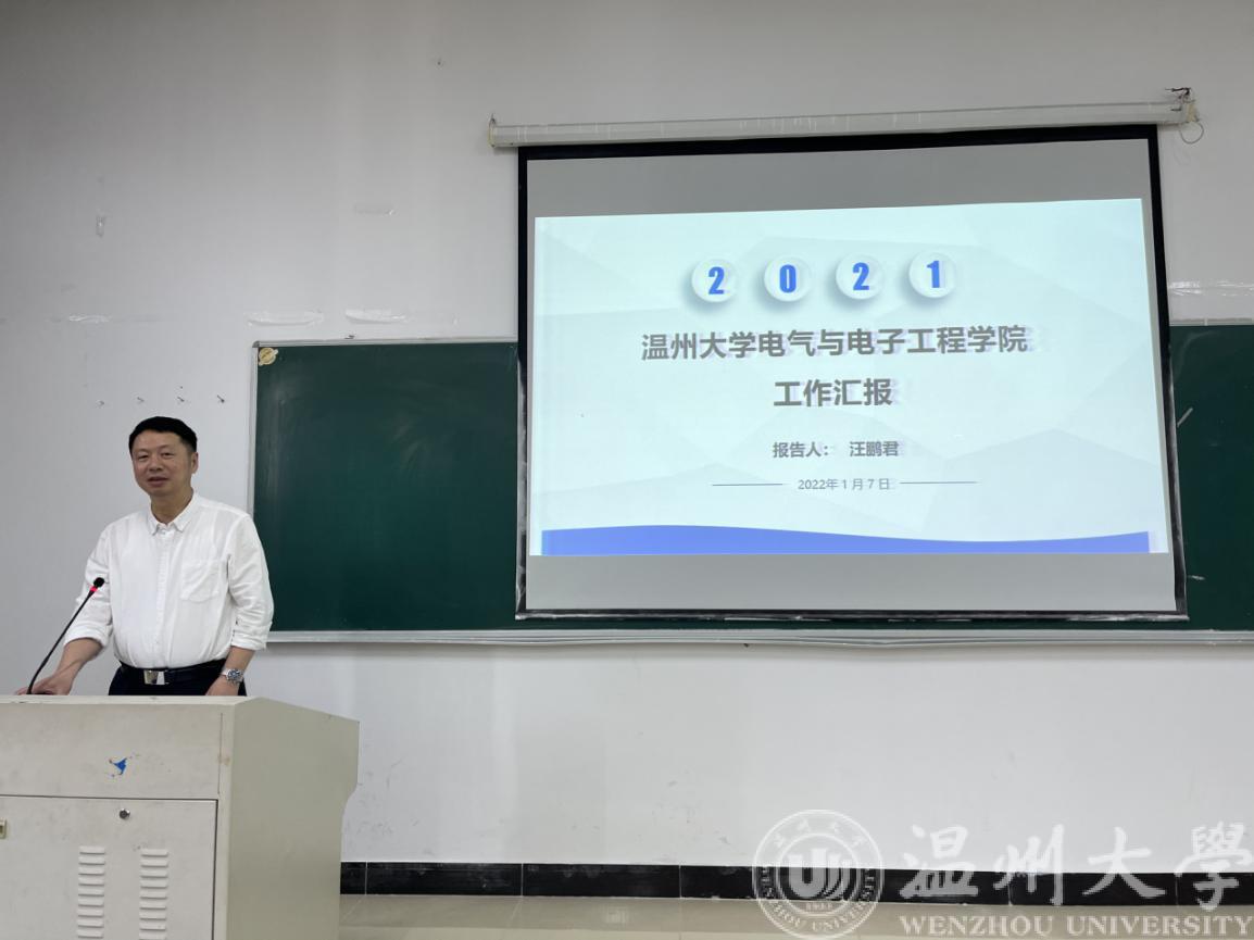 随后汪鹏君院长对学院去年的主要工作进行总结汇报,包括人才培养、学科科研、服务地方、师资队伍、党组织建设等多个方面。