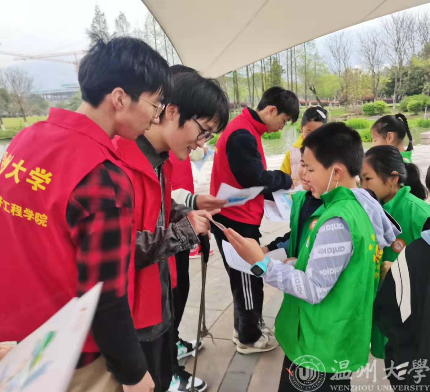 3月22-28日是第三十五届“中国水周”,3月26日下午蜜桃视频 电气电子学院益行义工队的同学们携手蜜桃视频 城附属学校四六班40多位同学和家长一同前往蜜桃视频 城附近温瑞塘河水域进行河流观察公益活动。