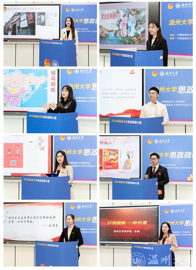本次比赛旨在通过组织参与思政微课大赛,培育优秀作品,激励师生勇担时代之责。比赛过程体现温大师生的政治觉悟和爱党初心,处处闪耀了我温大之光,进一步强化了政治引领和价值引领,将个人的理想同祖国的前途紧密结合,把自己的人生同民族的命运紧密相连,为实现中华民族伟大复兴中国梦贡献青春力量。