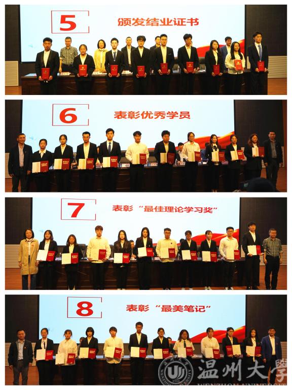 典礼上向学员代表颁发了结业证书,并向优秀学员、最佳理论学习奖、最美笔记获得学员颁发了奖品和证书。