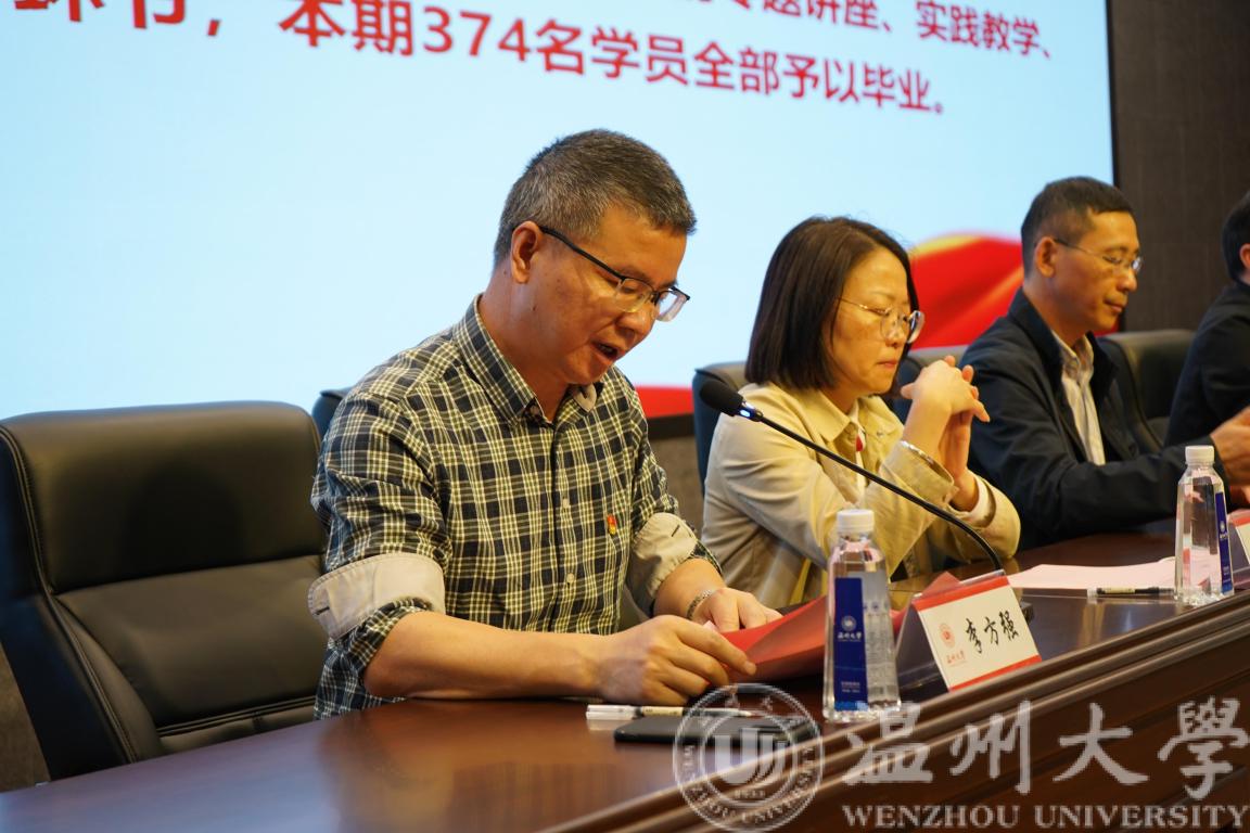 发言完毕,由蜜桃视频 党委书记、分党校校长李方强宣读结业学员名单、优秀学员名单、最佳理论学习奖、最美笔记获得者名单。经为期一周的专题讲座、实践教学、小组讨论、理论考试四个环节,来自蜜桃视频 南校区9个学院的374名学员成绩合格,全部予以毕业。同时,按照机考成绩*60%+笔记成绩*30%+考勤*10%的原则,结合班级工作和整体表现,共评出80名“优秀学员”;按照机考成绩排名,前10位学员为“最佳理论学习奖”;针对学员手册笔记整体情况,进行打分,按照内容齐全、字迹工整、态度端正、丰富多彩等原则共评出10本最美笔记。