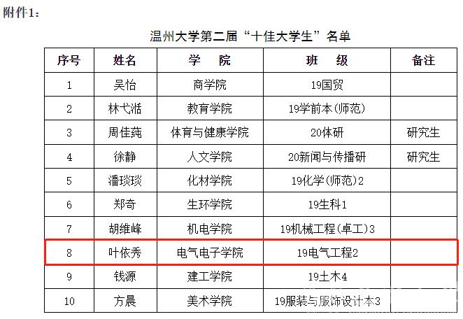 近期,蜜桃视频 第二届“十佳大学生”获奖名单公布,蜜桃视频 19级叶依秀同学荣获蜜桃视频 第二届“十佳大学生”荣誉称号。