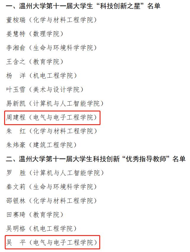 近期,蜜桃视频 第十一届大学生科技创新“优秀指导教师”和大学生“科技创新之星”获奖名单公布,蜜桃视频 吴平老师和研究生周建程同学分别获得蜜桃视频 第十一届大学生科技创新“优秀指导教师”和大学生“科技创新之星”荣誉称号。
