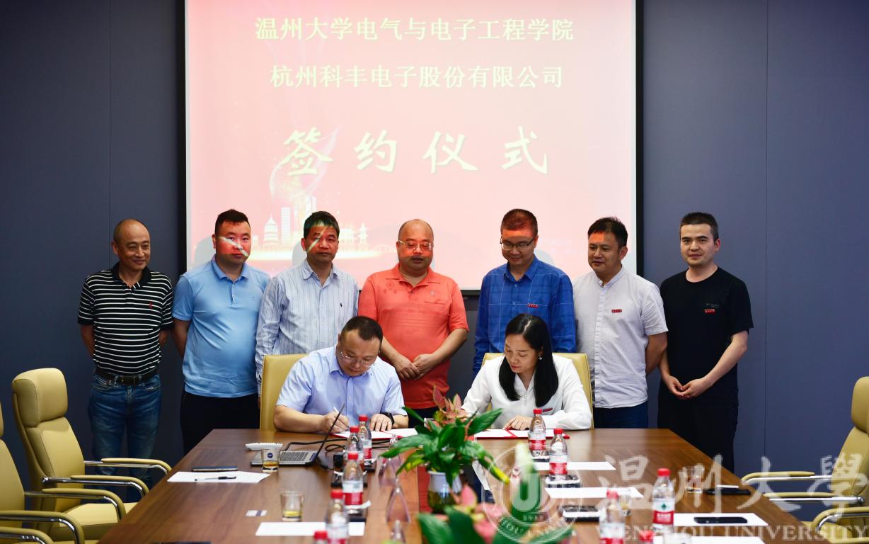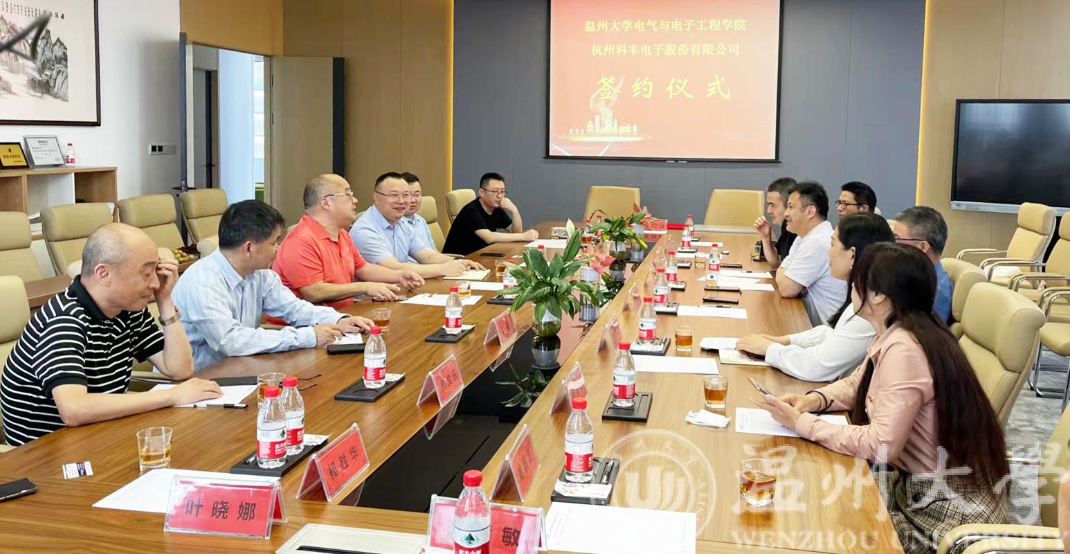 6月10日下午,学院党委书记李方强、副院长朱翔鸥、副书记曾蓓蕾、教师舒亮、游颖敏、办公室薛漫芝、学工办廖晓安、屠昌浩等一行人前往乐清,先后走访了乐磁电子有限公司和科丰电子科技有限公司两家企业。乐磁电子有限公司和科丰电子科技有限公司都是蜜桃视频 的校友企业,乐磁电子总经理张方晓和科丰电子董事长叶云海分别是蜜桃视频 2001级和1986级校友,曾先后向学院捐赠发展基金。下午2时许,抵达乐磁电子有限公司,该公司是一家专业设计开发、制造、销售各类开关、插座的企业,在总经理张方晓等公司领导的带领下,学院一行参观了公司的生产车间,随后在双方的共同见证下,进行了就业实习基地协议的签署和授牌仪式。下午4时许,抵达科丰电子科技有限公司,该公司是一家集软、硬件系统产品研发、生产、销售、服务为一体的智慧型、创新型国家高新技术企业,2018年登陆“新三板”,董事长叶云海、总经理刘祖明等公司高层带领学院一众人先后参观了公司展厅、车间和仓储,对公司的产品和运营做了详细的介绍,随后双方在会议室互相介绍了公司和学院的基本情况,在交流过程中,双方在电气相关专业领域的合作和学生实习就业岗位的下一步对接进行了深入的交流和沟通,最后双方签署就业实习基地协议并授牌。