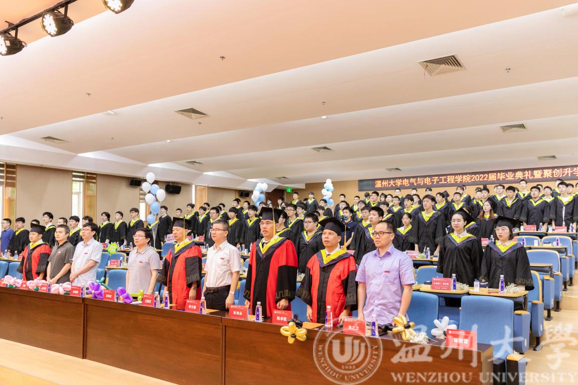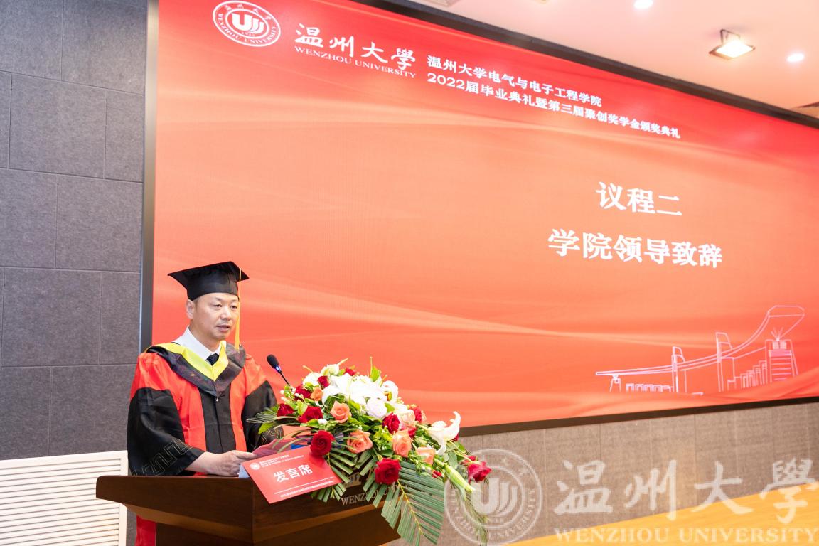 六月蝉鸣,盛夏别离,又到一年毕业季。6月21日下午14:45,蜜桃视频 2022届毕业生毕业典礼暨第三届聚创奖学金颁奖典礼于蜜桃视频 南校区岩松堂步青厅圆满举行。学院院长汪鹏君,党委书记李方强,副院长朱翔鸥、陈孝敬、朱海永,党委副书记曾蓓蕾,浙江聚创公司董事长、学院聚创奖学金发起人吴桂初教授,电气系党支部书记张正江,电子系系主任庄友谊,各毕业班班主任,各科室负责人,学工办全体辅导员,以及2022届本研毕业生出席本次毕业典礼。本次毕业典礼采用线上线下相结合的方式进行。