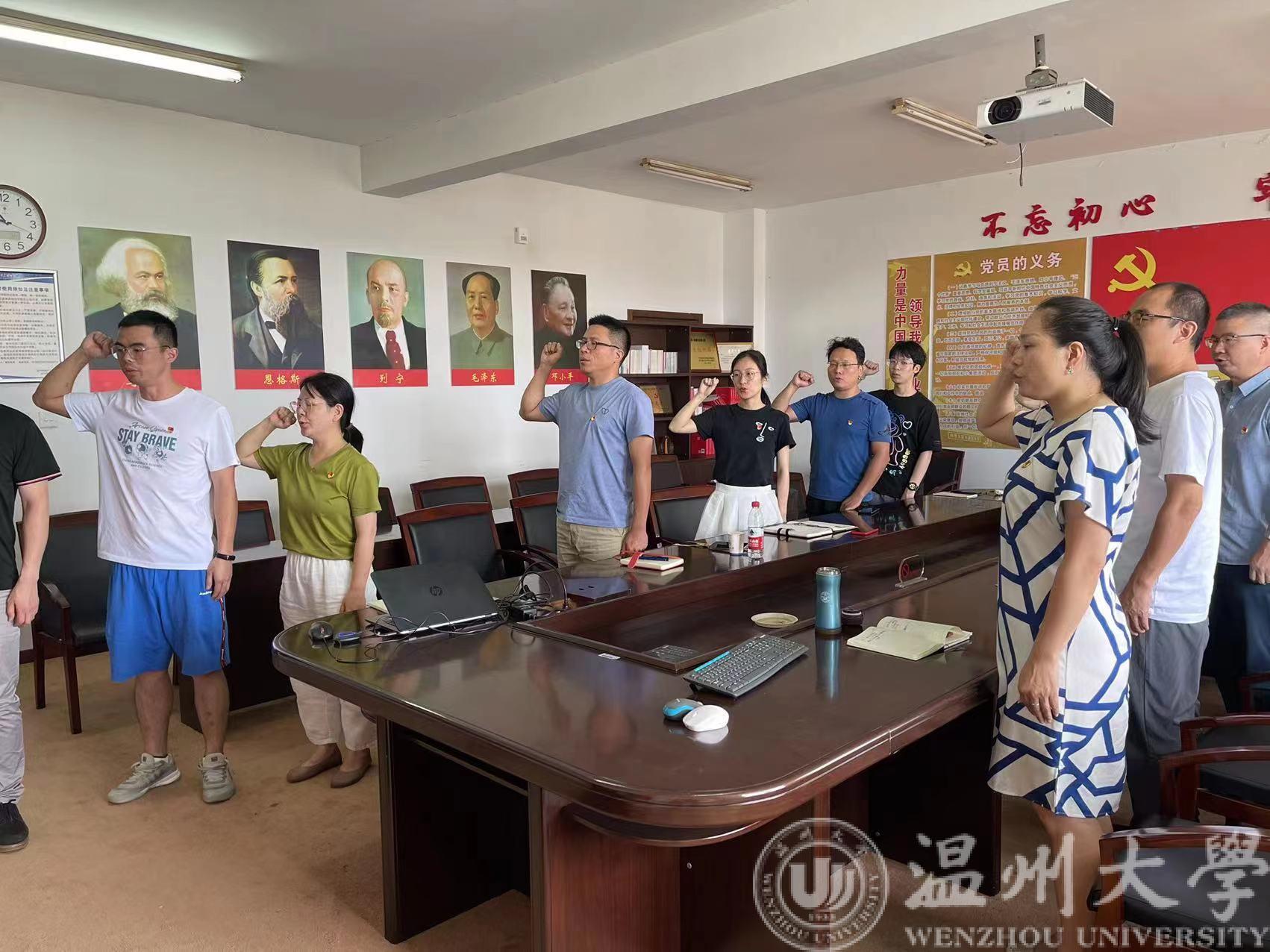 去年和今年,蜜桃视频 行政教工党支部共发展两位教工党员,在主题党日活动的最后,举行新党员入党宣誓和重温入党誓词仪式。 在领誓人的带领下,全体党员面向党旗,庄严宣誓!