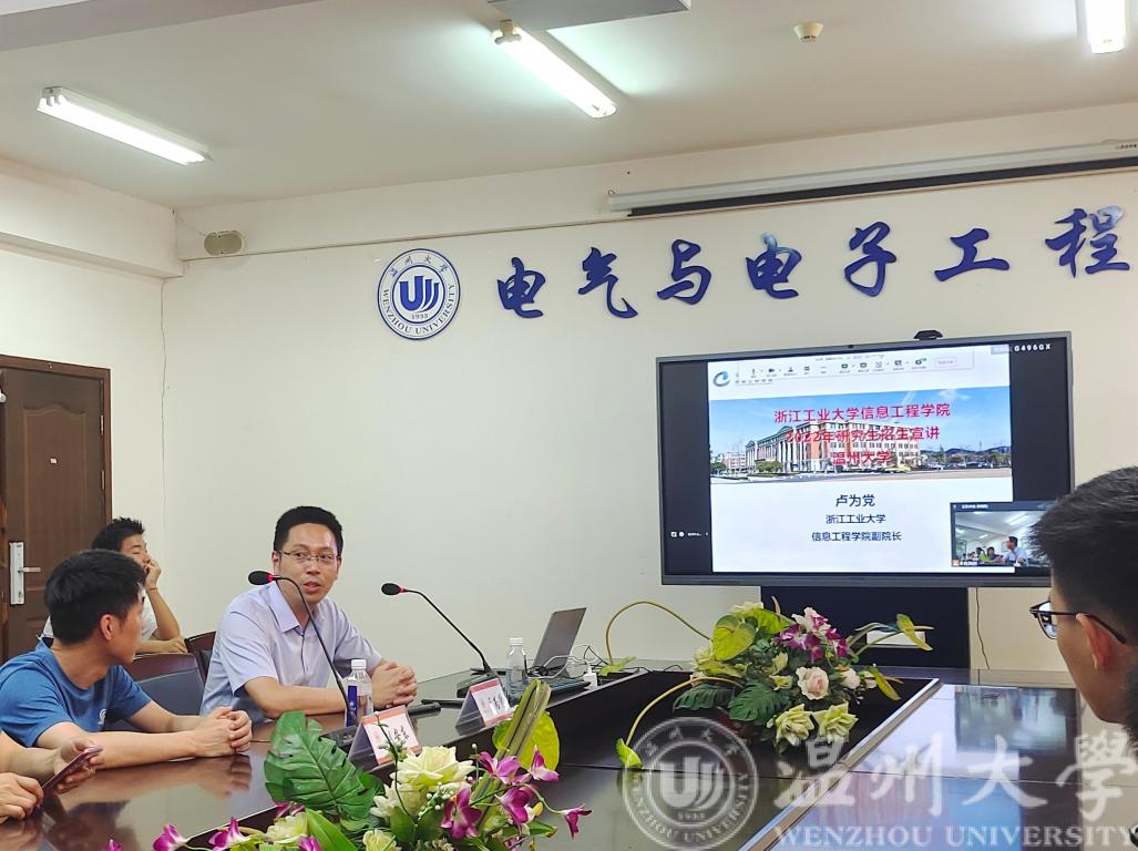 7月26日上午10:00,浙江工业大学信息工程学院2022年研究生招生宣讲会在蜜桃视频 1A-502召开。本次宣讲会由浙江工业大学信息工程学院副院长卢为党教授及控制工程学位负责人刘安东副教授担任主讲,蜜桃视频 党委副书记曾蓓蕾老师主持,2019级有意向报考的同学参与。