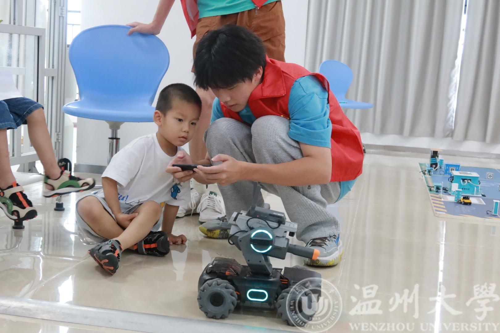 云智立实践团队成员通过现场展示和互动体验,向参与的孩子们展示了智能机器人的高效操作,智能控制系统的运作原理等。孩子们可以亲身体验智能机器人的协作工作,观看智能生产线的自动化流程,深入了解智能制造的全过程。在老师的讲解和示范下,孩子们新奇地体验着各种各样的科技项目,包括智能小车控制、VR、智能制造学习工场、工业机器人视觉实践、工业机器人与数控机床实践等内容,用视觉和触觉零距离感受Al科技带来的魅力。