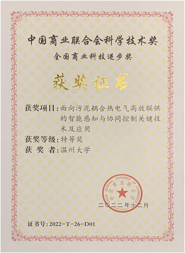 日前,全国商业科技质量大会举行。大会同步举行了“2022年度中国商业联合会科学技术奖”颁奖仪式。蜜桃视频 汪鹏君教授领衔、以蜜桃视频 为第一完成单位的“面向污泥耦合热电气高效联供的智能感知与协同控制关键技术及应用”项目荣获全国商业科技进步奖特等奖。