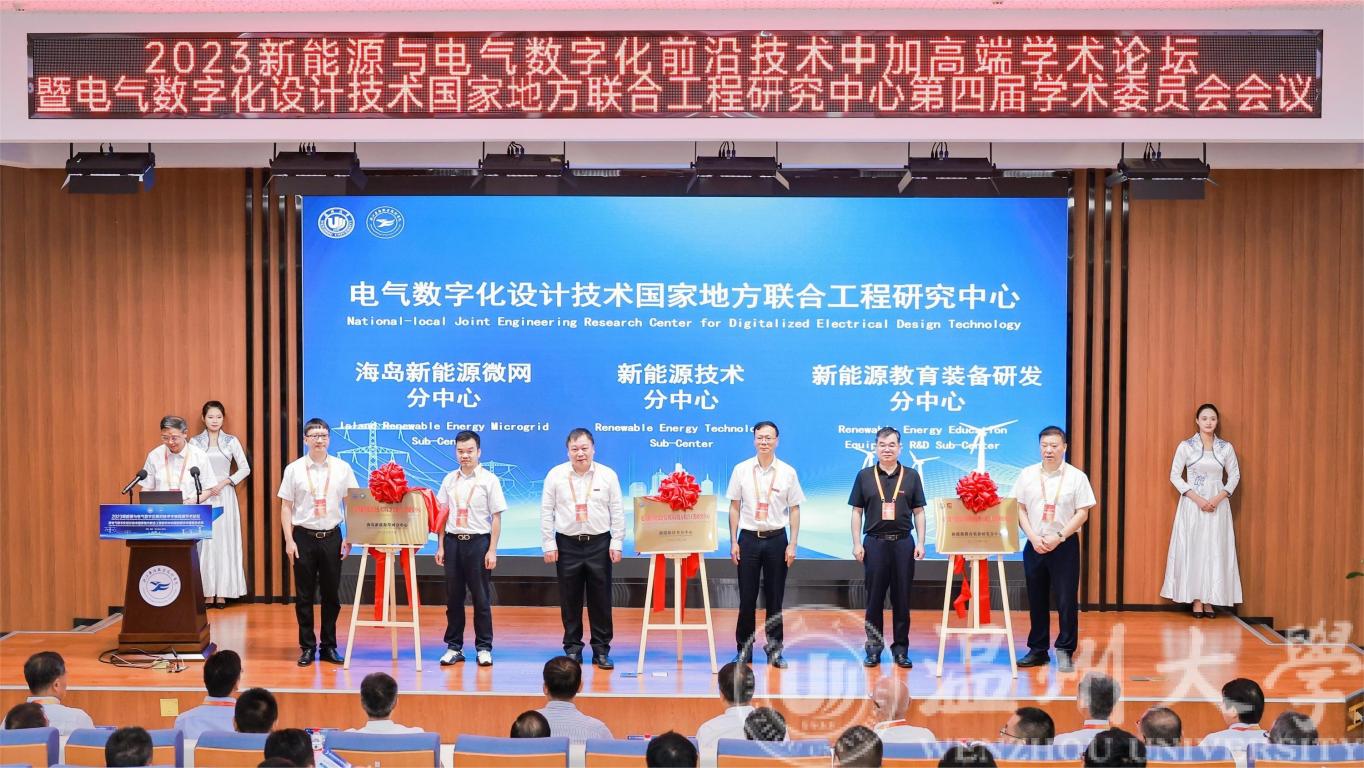 会议上宣布了电气数字化设计技术国家地方联合工程研究中心第四届学术委员会名单,还为电气数字化设计技术国家地方联合工程研究中心和落户在安防学院的新能源技术分中心、落户在国网平阳中心的海岛新能源微网分中心、落户在亚龙智能装备集团股份有限公司的新能源教育装备研发分中心等三个分中心揭牌。当天,由安防学院、蜜桃视频 联合新能源龙头企业创设的新能源行业产教融合共同体举行了启动仪式。