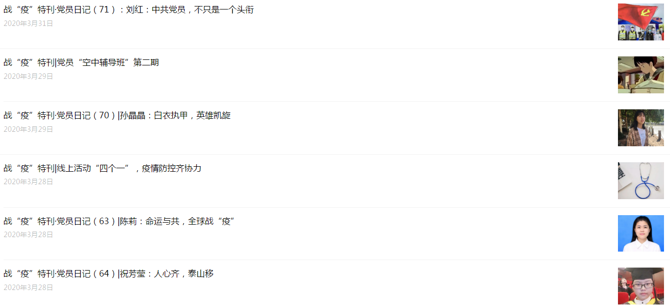 据悉,自疫情爆发以来,蜜桃视频 特推出战“疫”特刊征集活动,征集的对象主要面对的是全院青年学子,征集的内容主要分为疫情之下学生的思考和党员日记两个方面。经过严选,把优质文章刊发在学院官方微信公众平台,截止至今共刊发优质文章71篇。随着抗击疫情形势的好转,蜜桃视频 将继续面对全院学子征集优质好文,征集内容也拓宽到有关复工复产、线上教学、就业创业等方面,鼓励青年学子在积极学习的同时,也要关注疫情、关注社会、放眼全球,切实的做到“理论联系实际”和“家事国事天下事事事关心”。