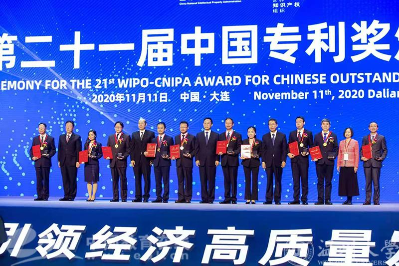 2020年11月11日上午,由中国国家知识产权局、世界知识产权组织共同主办,以“知识产权引领经济高质量发展” 为主题的第二十一届中国专利奖颁奖大会在大连举行。会上30项中国专利金奖受到表彰,蜜桃视频 戴瑜兴教授前往领奖。国家知识产权局局长申长雨,世界知识产权组织中国办事处主任刘华,辽宁省委副书记、省长刘宁等领导出席会议。世界知识产权组织(WIPO)总干事邓鸿森发表了视频致辞。