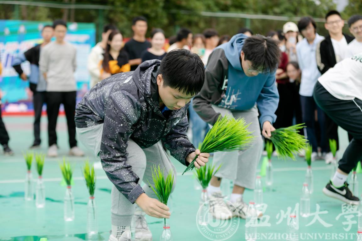篮球场变身耕田,师生们在“自留地”上又快又准地将“秧苗”插入“田地”。大家在运动项目中体验农耕文化,感受劳动艰辛。