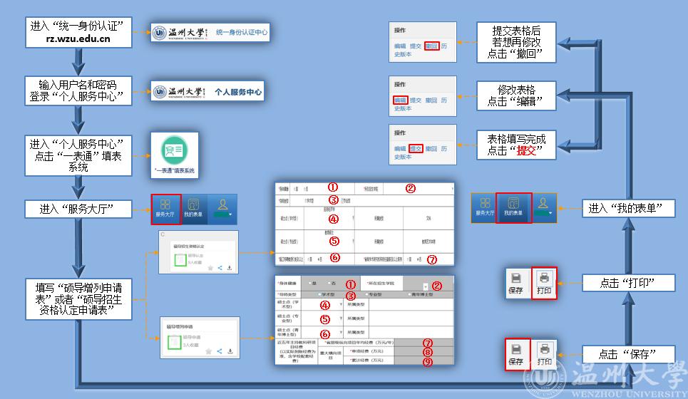 (1)校内人员申请,进入蜜桃视频 官网蜜桃视频,点击“统一身份认证”,登录“个人服务中心”点击“一表通填表系统”,进入“服务大厅”页面,填写 “硕士生导师申请表”或“硕导招生资格认定表”,然后点击页面左上方“提交”按钮、再点击“打印”按钮,将打印出的纸质申请表提交学院。佐证材料无须提供。另外,申请表中涉及教学项目和教学成果奖励信息(附件4)由申请人另外自行填写,随申请表一起上交,附佐证材料。