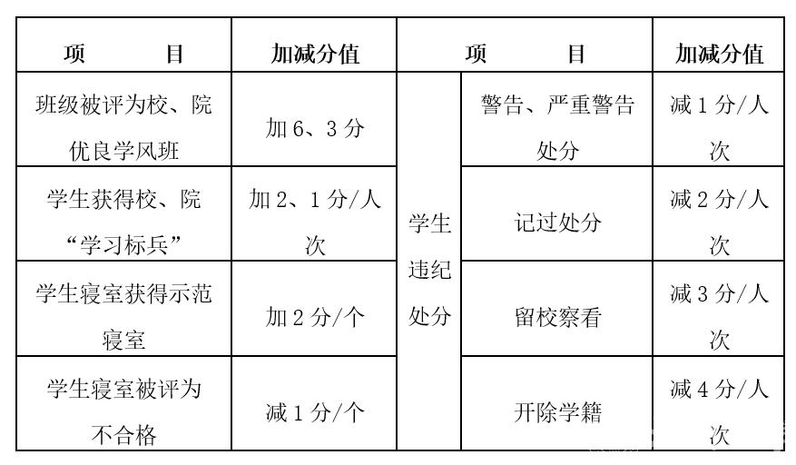 (3)学院评价由学院根据各个班级学生的学习态度(自修学习和课堂纪律等)、学业情况(优良率和及格率、外语和计算机等级通过率、考研、就业等)、科研竞赛获奖情况、寝室文明情况(走访寝室和文明寝室等)、特殊学生信息掌握及沟通交流情况进行考评,侧重考核班主任与学生的思想交流、班集体建设、关心学生学习生活等情况。