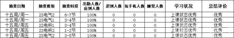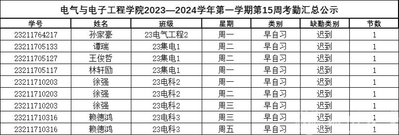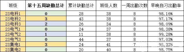 第十五周早晚自习缺勤情况如下: