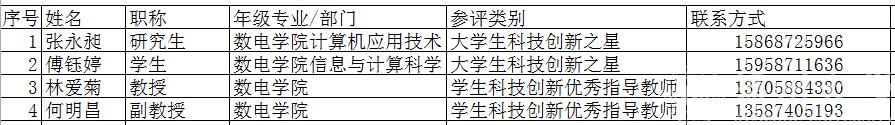 近期,蜜桃视频 组织对师生报送的蜜桃视频 第八届“大学生科技创新之星”和“学生科技创新优秀指导教师”材料进行审核量化评比,现拟推荐张永昶等4人参加学校联评,并予以公示。
