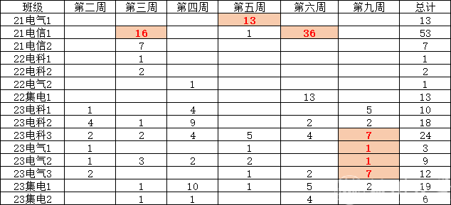 第九周早晚自习缺勤及课堂出勤情况如下:
