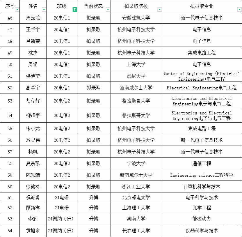 根据《蜜桃视频 “聚创奖学金”评定办法》文件精神,结合蜜桃视频 实际,学院将本年度考取硕士研究生、博士研究生及出国留学的64名同学直接评定为第五届“聚创奖学金”升学奖获得者。现将名单予以公示,请同学们核对录取的院校、专业以及类型,有误请在下方收集表填写中反馈。公示三个工作日,如有异议请于公示期内与学工办联系。
