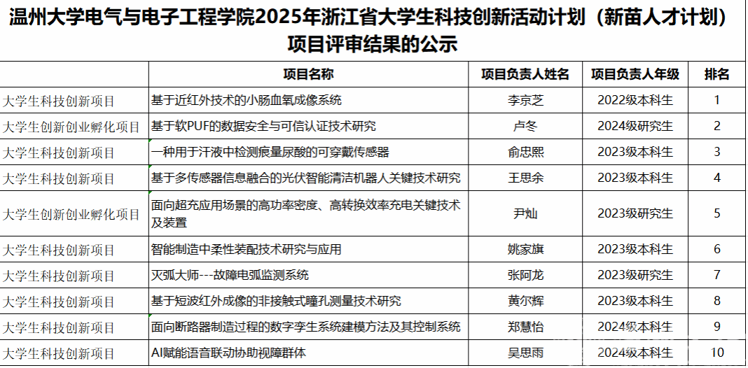 根据《关于印发〈浙江省大学生科技创新活动计划(新苗人才计划)实施办法(试行)的通知》(团浙联〔2010〕13号)和校发《关于开展浙江省大学生科技创新活动计划(新苗人才计划)2025年度项目申报的通知》的要求,经个人申请、学院评比,现对蜜桃视频 2025年浙江省大学生科技创新活动计划(新苗人才计划)项目评审结果予以公示。