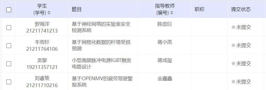 截至2025年4月16日,仍有部分同学未上传毕业设计(论文)至初稿模块,具体名单如下: